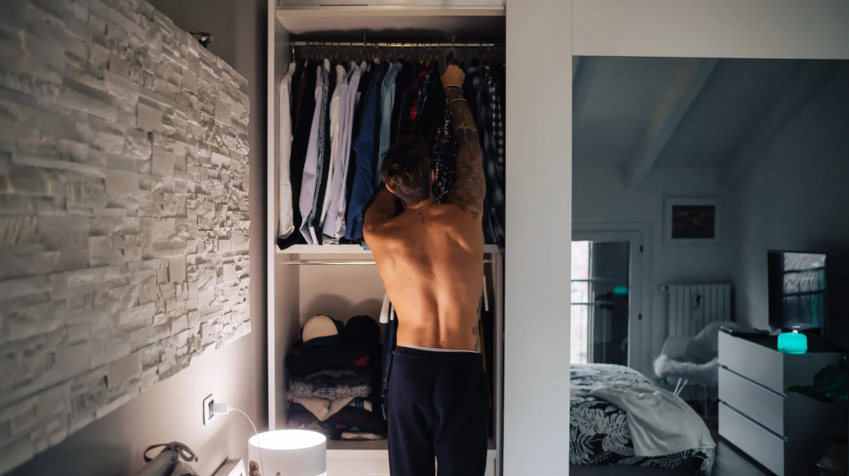 1.先去味再收納:如果你手邊有可以用來幫衣物除菌除味的噴霧或整燙機,建議先噴灑或快速整燙過,再吊掛起來,擺放地點以開放式衣架最優,避免和衣櫃裡的乾淨衣物混放。
