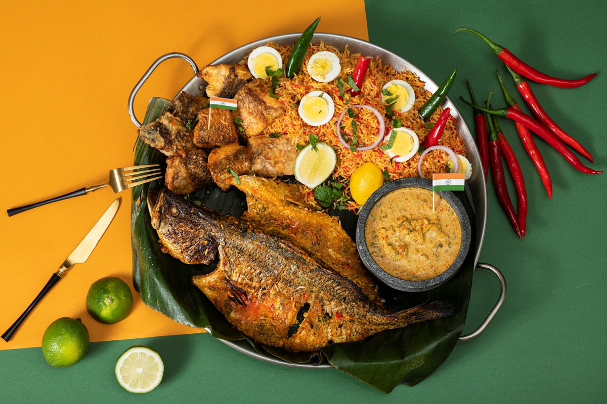 印度幅員廣大,隨著不同地區的氣候、歷史、種族及宗教信仰,造就印度菜派系非常多元。特別的是,因應大量吃素人口,幾乎所有印度菜餚都會將豆類入饌,如紅扁豆、鷹嘴豆及樹豆等,不但增添豆類濃郁口感,同時也為素食者補充蛋白質,是重要的營養來源。來自印度的主廚羅瓦特(Shiv Rawat)及拉克什(Rakesh Semal)力推家鄉美食烤魚印度香飯,金黃酥脆的烤魚搭配香香辣辣的咖哩及印度香飯,印度香飯的美味來自於大量香料如酥油、月桂葉、香菜、薄荷葉等,再加入薑黃使之呈現金黃色澤,味香色美;國民小吃印度香料炸蔬菜,又稱印度天婦羅,將蔬菜如花椰菜、秋葵、茄子等及各式各樣的香料如辣椒粉、香菜等,包入鷹嘴豆麵糊中,散發出誘人香氣的炸餡餅即刻上桌!