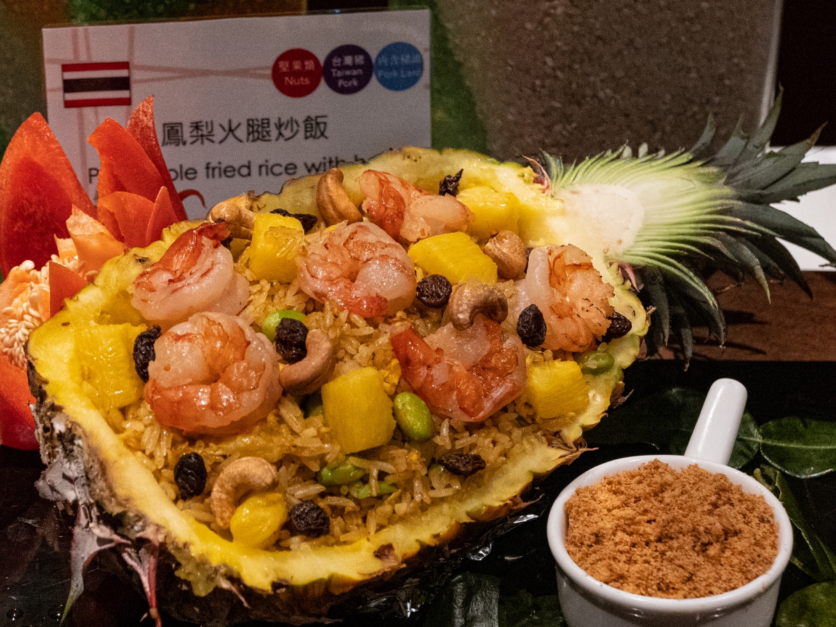 泰式經典酸辣湯-冬蔭功湯麵,將南薑、香茅、檸檬葉、辣椒醬、魚露均勻打成靈魂基底醬,接著放入鍋中炒出香氣,再加入蝦湯、蔥、香菇、香茅等食材煮滾,最後放入檸檬汁、白胡椒等調味,酸酸甜甜的湯頭立刻開胃,食慾大開。另有鳳梨火腿炒飯、泰式鯖魚炒飯、斑蘭葉炸雞、青木瓜沙拉及紫米布丁等經典佳餚,給食客們來一場猶如置身泰國度假的泰式饗宴。