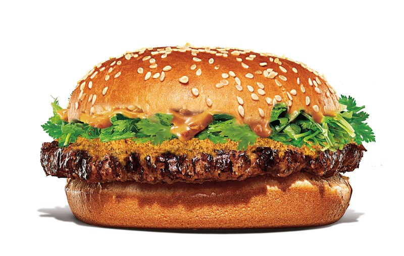 美式漢堡搖身一變變成道地台式風味,加入顆粒口感的花生醬,再撒上花生糖粉,加入靈魂角色「香菜」,並夾入經典美式火烤牛肉排,鹹甜交織出新風味,準備挑戰老饕味蕾!