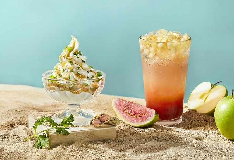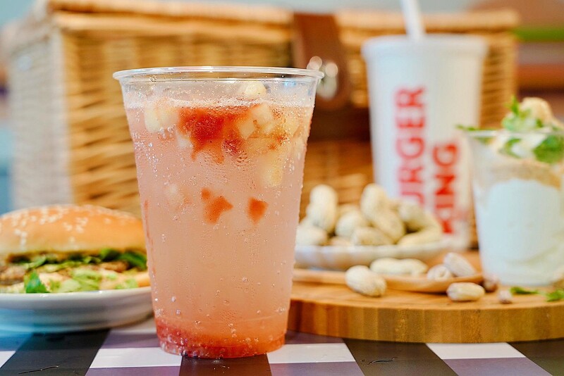 除了超狂的香菜漢堡外,也有推出超消暑的「 紅心芭樂氣泡飲」土芭樂芬芳香氣及滋味,搭配青蘋果丁特有的回甘酸味與7-up,在微酸與甜蜜之間達到消暑清新的平衡,就像戀愛時的心情。