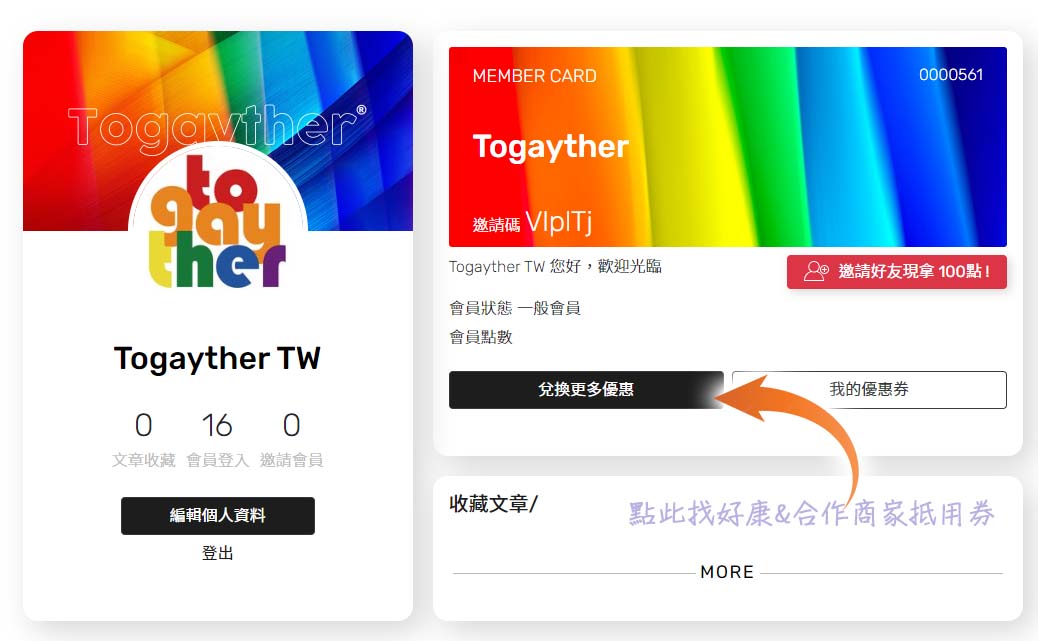💱多種合作商家兌換內容詳情請見Togayther會員兌換專區!