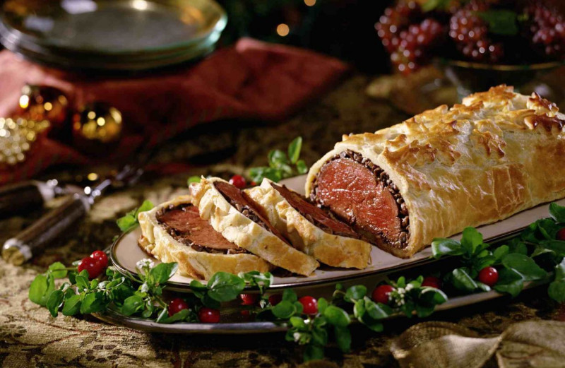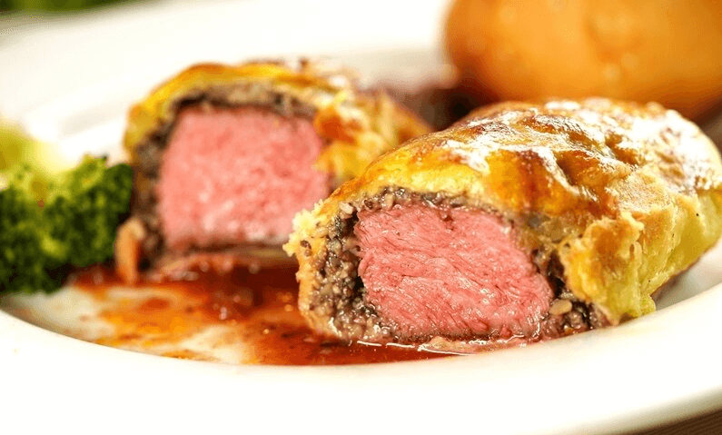 跟紐西蘭首都同名的Beef Wellington威靈頓牛排,以金黃酥皮包裹整塊牛肉跟餡料的美味料理,一刀切開會先聽到香酥爽脆的聲音,伴隨而來的是玫瑰色牛肉的美色,令人垂涎欲滴。選用整隻牛最柔嫩的部位,在里脊部位最前端及最後端的「Filet Mignon菲力」,這部分位於腹腔內不會被運動到所以肉質極為柔嫩多汁,脂肪成份非常少,是整隻牛裡最嫩最美味,也是價格最貴的地方。