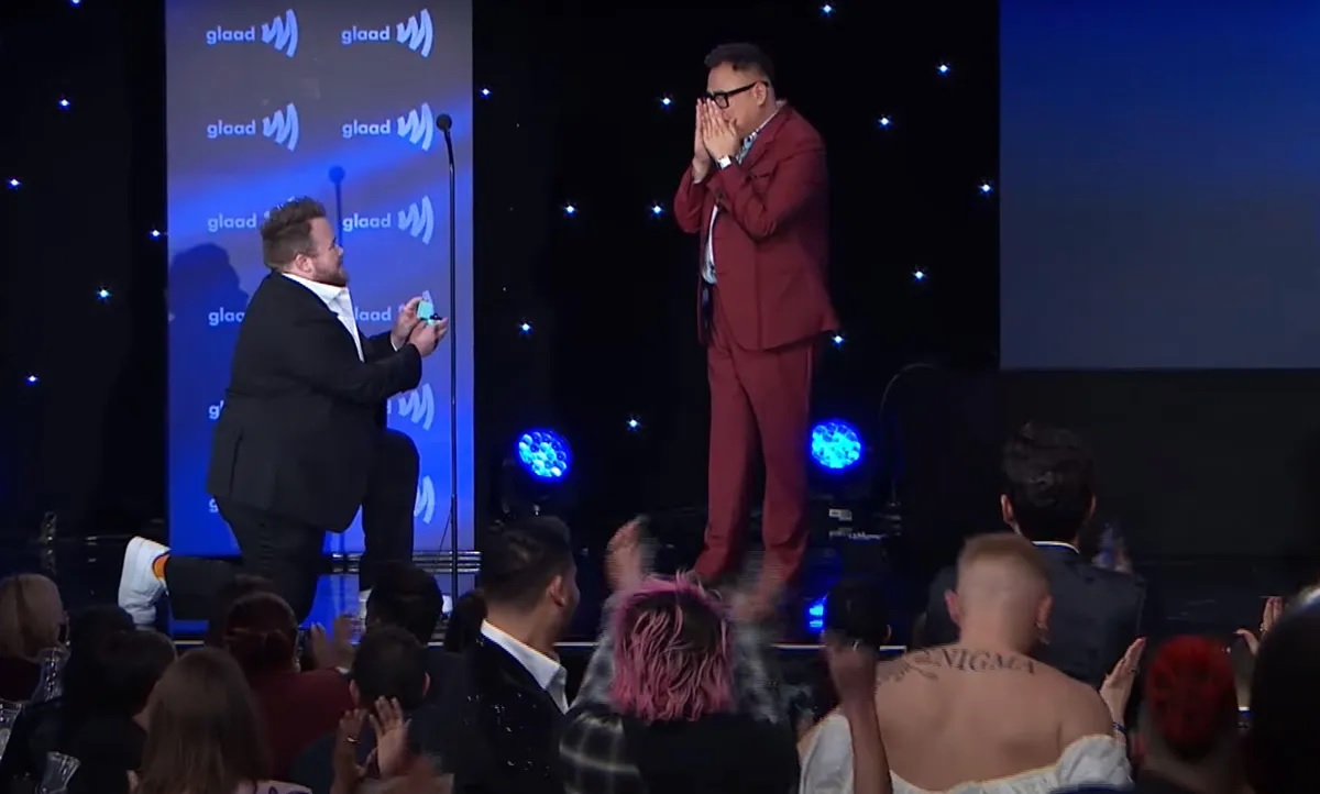 這是一場在 GLAAD 媒體獎頒獎典禮上備受祝福的求婚儀式,相信 Nico Santos 也不會想到在 GLAAD 典禮上會有這麼大的驚喜!
