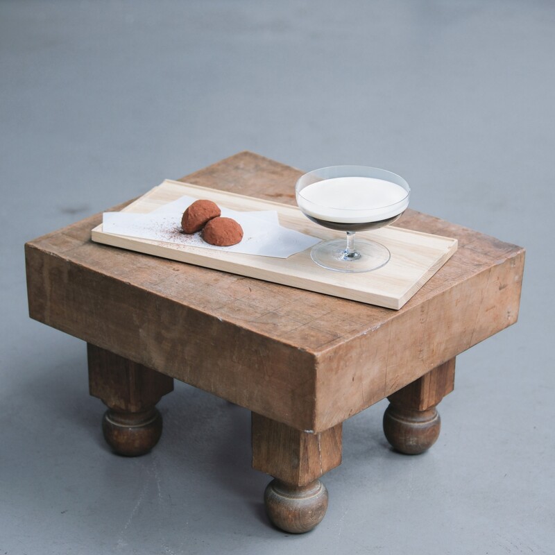 琥珀女王是関口一郎先生店內的原創招牌飲品,「琥珀咖啡」地處酒吧林立的區域,因此他便以調酒概念而創作了此飲品,也更像是一杯可以飲用的甜點。取用50c.c.黑咖啡油脂與日本空運來台高達35%生奶油的結合,喝起來有濃郁的酒香,且酸度明亮;質地飽滿,在口中格外具有包覆感與滑潤度。搭配的80%的生巧克力,內餡裡面有加入少量的柑橘醬,也呼應了咖啡的酸度,苦中回甘與可可的風味,則讓味道的層次更為豐富完整。