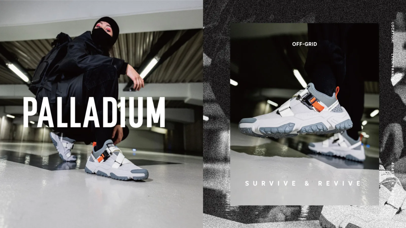 經過超過七十年的經營,Palladium 在功能和潮流氛圍中找到平衡,經典百搭的外型堅持透氣舒適以及堅固耐磨的產品特徵,以多功能戶外鞋履的流行指標,成為全球年輕人追捧的對象。今年,Palladium 的 SURVIVAL PROJECT 高端系列,以「FROM SURVIVE TO REVIVE」為主題正式推出全新主打款式 「OFF-GRID輪胎潮鞋」,前所未見的強大機能與外型,絕對讓人耳目一新。