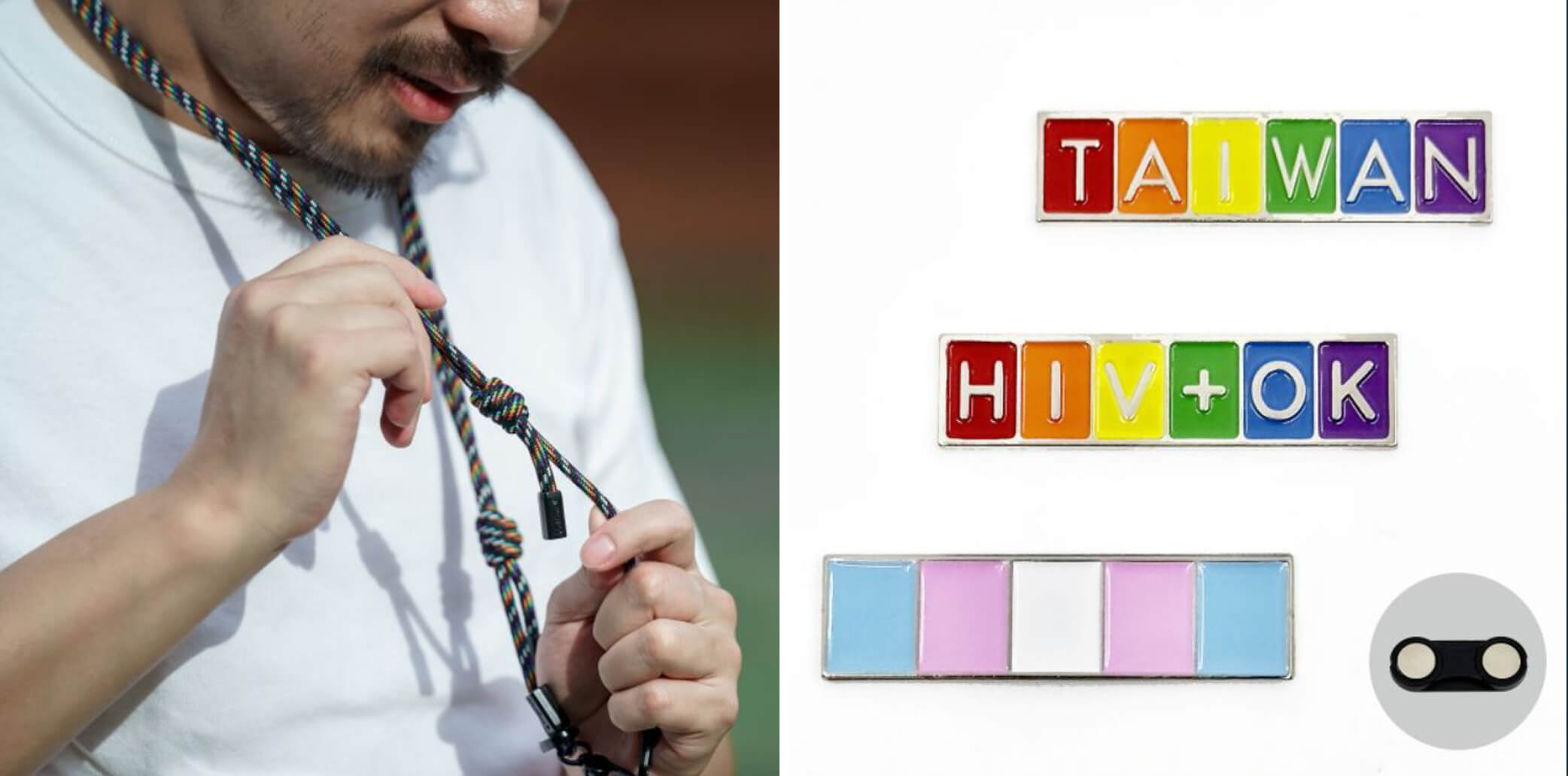 彩虹萬用小物再+1!除了實用,含意也重要!能夠自由掛手機也能掛包包的「不止彩虹萬用掛繩」,外觀包含了代表跨性別及多元族裔的 11 種顏色,展現無論是什麼樣的認同都能自在地展現驕傲。搭配上簡約又明確的「淺浮雕金屬徽章」,雙雙一組完整表達了台灣民主自由及跨國多元平權的組合意義。
