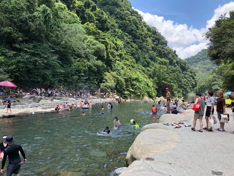 若是除了烤肉以外還想玩水的話就非常推薦讀者們到「鴛鴦谷烤肉區」,這裡有寬闊的水域、烤肉區、廁所、更衣室及停車場,設備十分齊全,現場也有販售零食飲料,價格都很合理實惠,簡直超適合懶人,鴛鴦谷主要的戲水段水流平穩,水深約在一般成人的腰部位置,7.8 月平日、假日都有救生員,十分適合帶小朋友一起來玩!