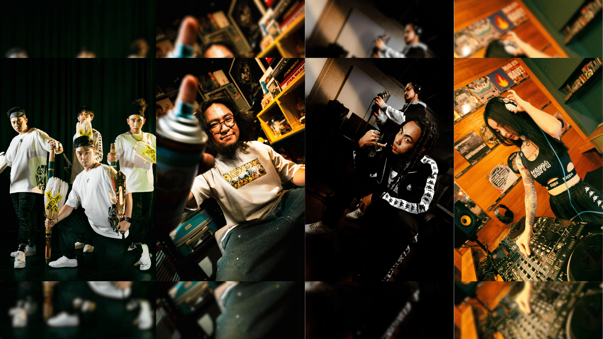 Kappa Taiwan與台灣的Hip Hop文化元素攜手合作,共同打造一系列限定街頭聯名商品。這次聯名合作邀請了台灣四個領域中備受矚目的創作者:「饒舌-Asiaboy 禁藥王& Lizi 栗子」、「塗鴉-大腸王」、「街舞-T.S.D鐵四帝」、「DJ-Qunna昆娜」。