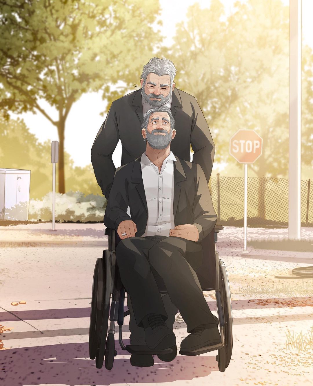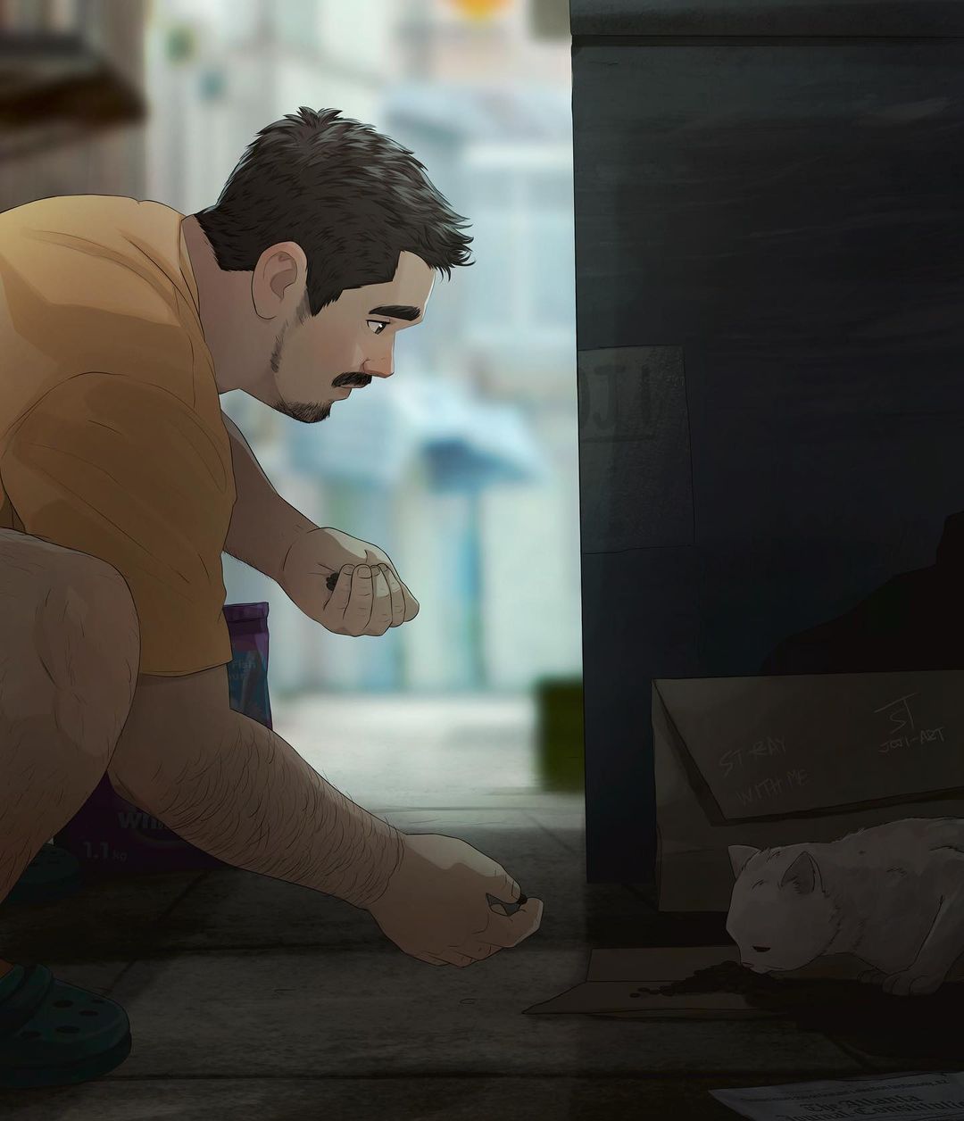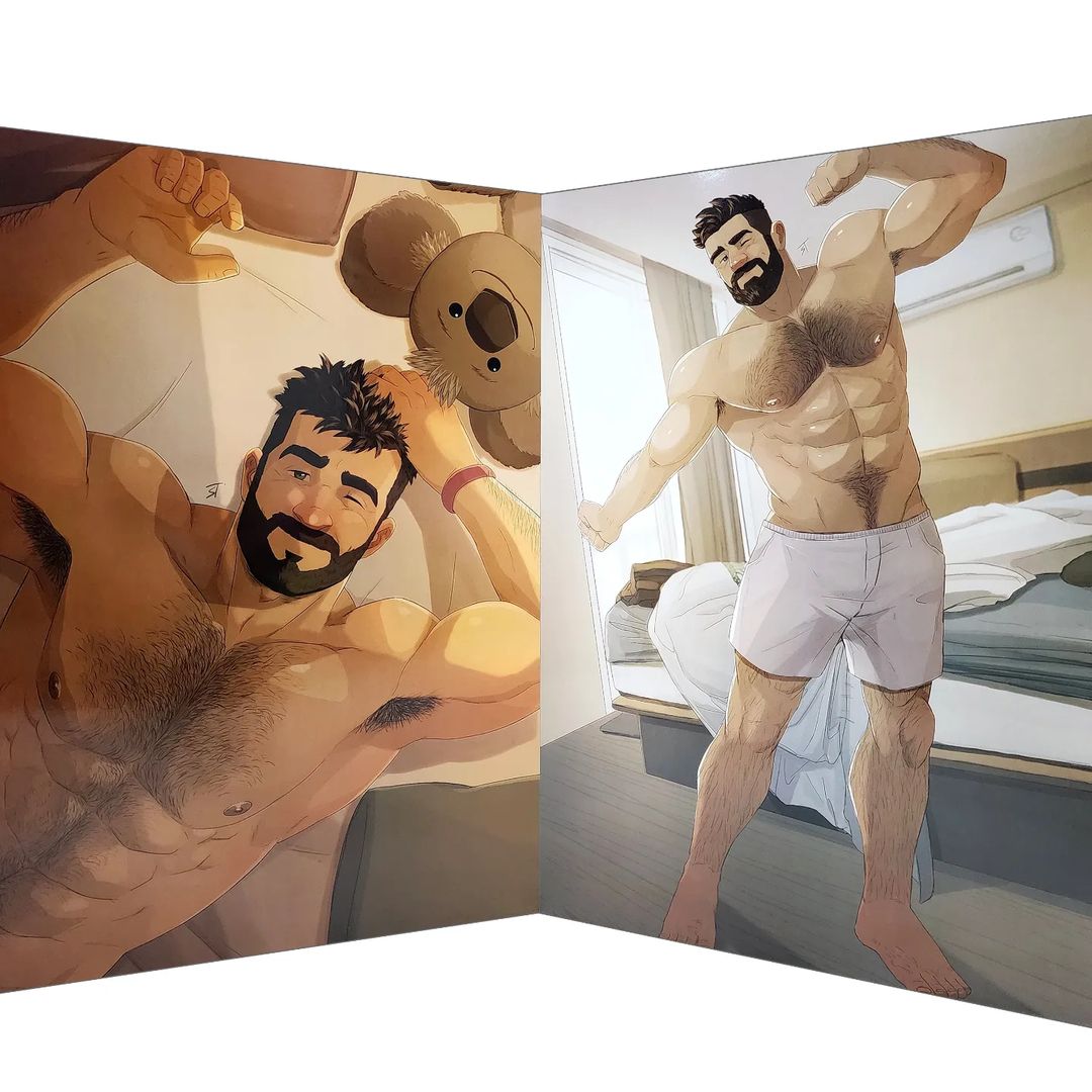 他的創作作品不僅描繪了大塊頭、毛茸茸、留著鬍鬚的男性所具有的粗獷性感,也利用了他獨特的視角和微妙的講故事技巧,塑造了可愛的角色。這些角色的眼睛似乎蘊含著無盡的故事,讓觀者不由得感同身受。對於我們這些曾經歷過痛苦、愛情或幸福的人來說,這些情感和故事都顯得格外熟悉。