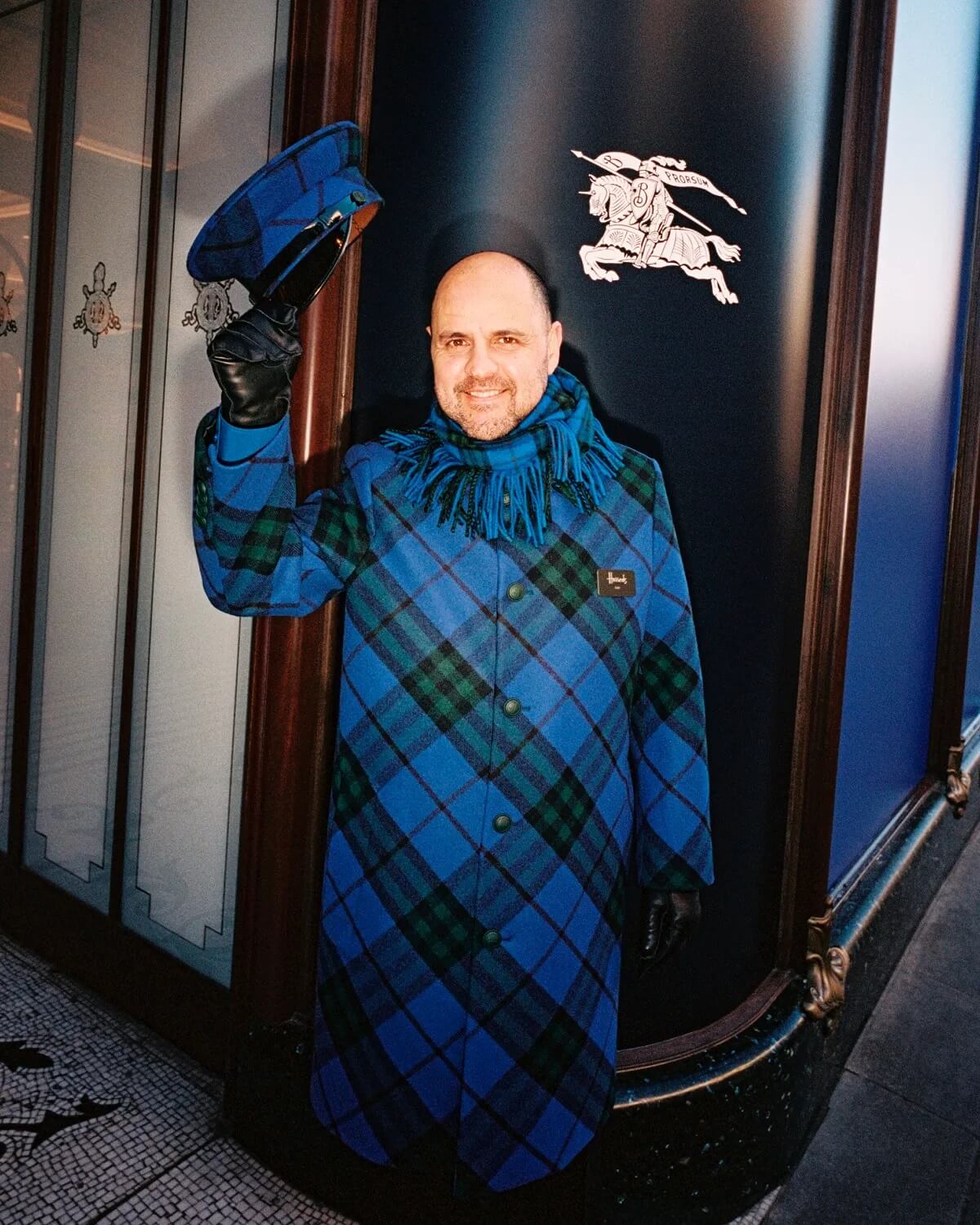 哈洛德百货的绿色制服广为人知,为呼应此次活动,Daniel Lee特别以2024春季系列为发想,将传统的绿色制服重新设计成了骑士蓝格纹造型,这是哈洛德百货首次由时尚品牌打造的制服。