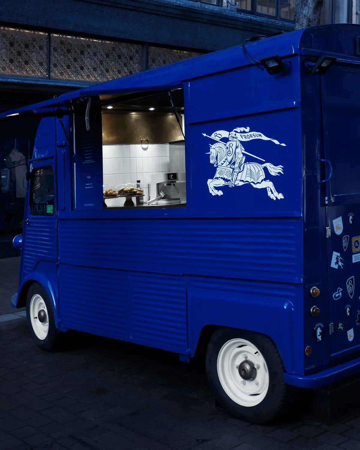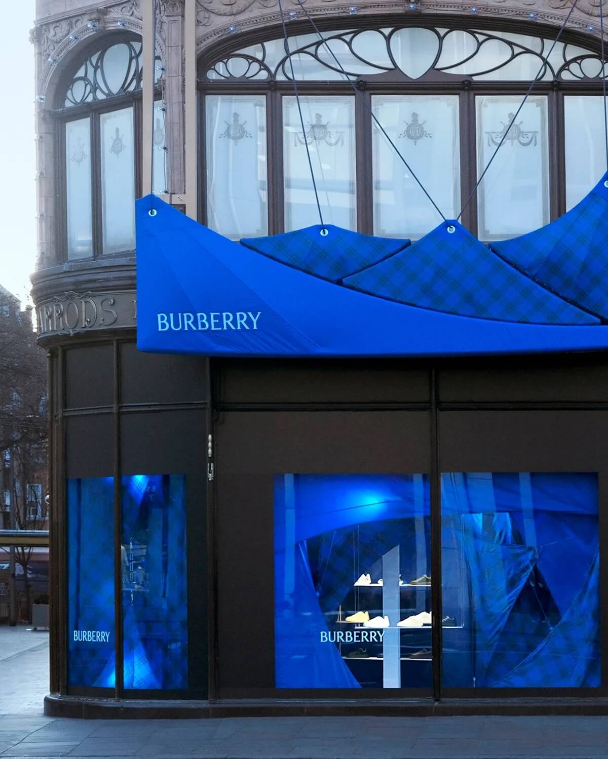 日落時分,哈羅德百貨的外牆將被騎士藍色的燈光照亮,這是Burberry首席創意總監Daniel Lee為品牌設計的新標誌性色彩。