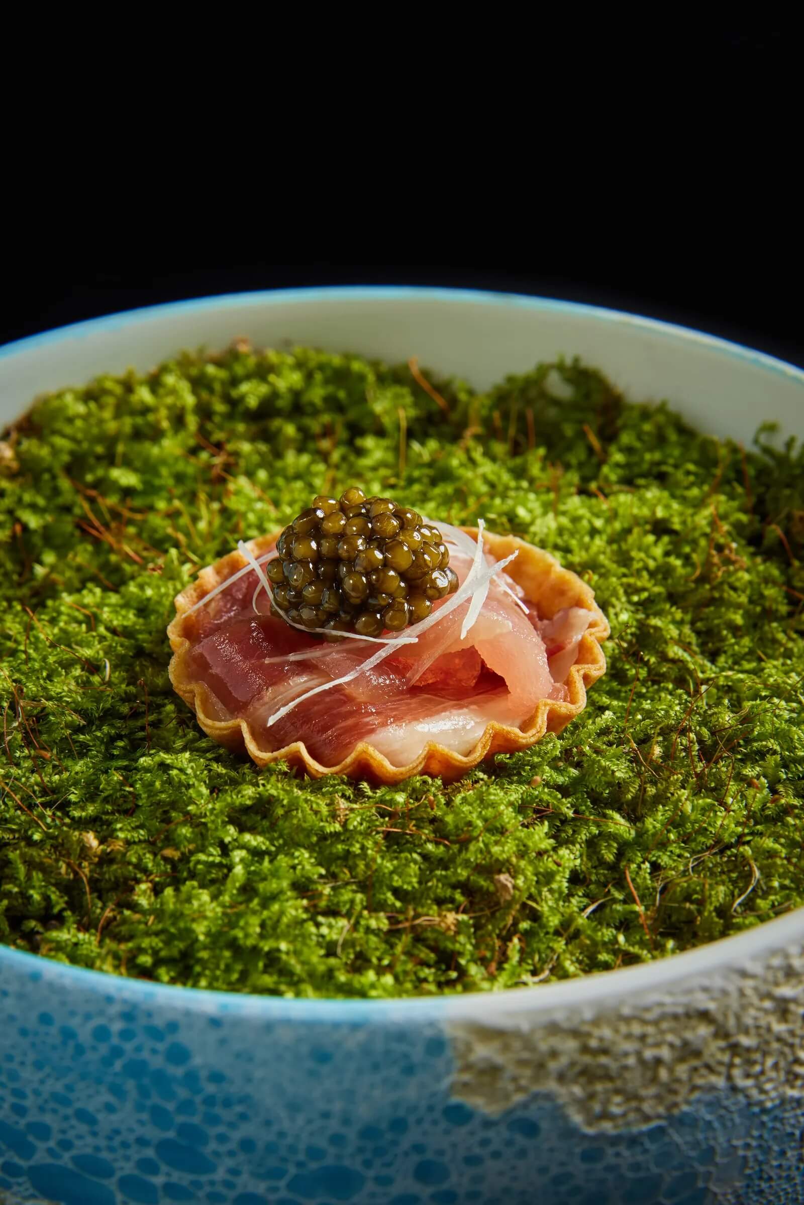 路易威登與東南亞最具代表性的明星主廚合作,自然是一場精彩絕倫的盛宴。這位印度籍主廚為「Gaggan at Louis Vuitton」以5個S為概念設計了一套「Food Journey」,包括Sweet(甜)、Sour(酸)、Salty(鹹)、Spicy(辣)與Surprise(驚喜),食客可以在中餐和晚餐時段體驗這份專屬菜單。從泰式風格的龍蝦到Damier格紋圖案的蘑菇料理,每道菜都展現了獨特的風味。私人包廂更設置了一個秘密按鈕,只要一按便可以直擊廚房裡的熱鬧場景,體驗Chef’s Table的專屬服務。