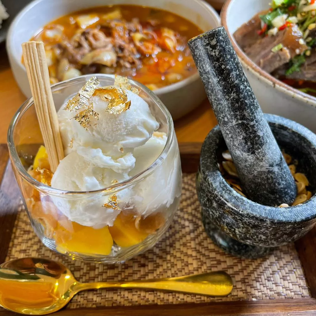 「Baan Landai」是一家非常值得光顧的餐廳,裝潢精緻華麗,店內隨處可見鮮花與植栽,營造出優雅的氛圍。餐點更是顏值爆表,甚至榮獲了米其林必比登的推薦。