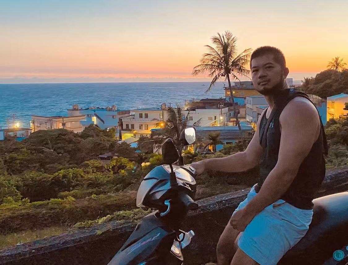 不論是坐在機車上迎風看海,還是站在礁岩上沉靜凝視遠方,John的存在彷彿天生自帶濾鏡。他的氣場不是外放的霸氣,而是一種「我在這裡,就很穩」的平靜力量。