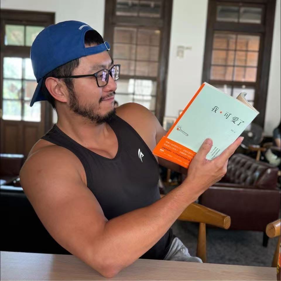 穿著無袖緊身背心,鯊魚坐在窗邊閱讀。手臂的線條因光影浮現,智性與性感完美融合。不是所有的猛男都只懂健身,鯊魚的書櫃裡,藏著比二頭肌還厚實的內涵。