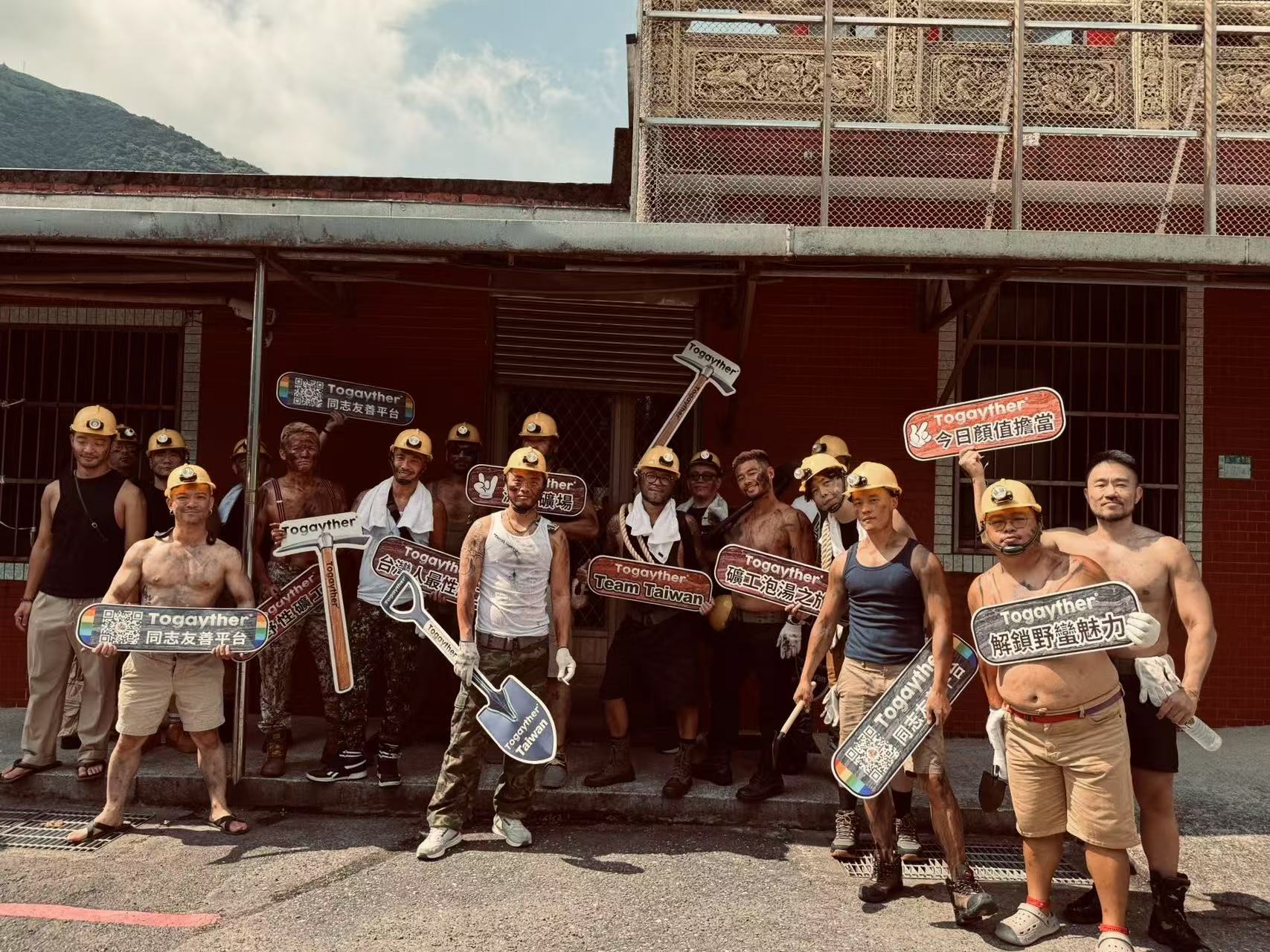 除了歷史重現,這場礦工體驗也加入了現代社群的趣味互動。在九份老街上,赤膊礦工與遊客交流、合影,手上的「Togayther 野性礦工」牌子成了最吸睛的標誌。這種跨越時空的對話,讓礦工文化不只是教科書上的歷史,而是能被觸摸、被感受、被分享的活體故事。