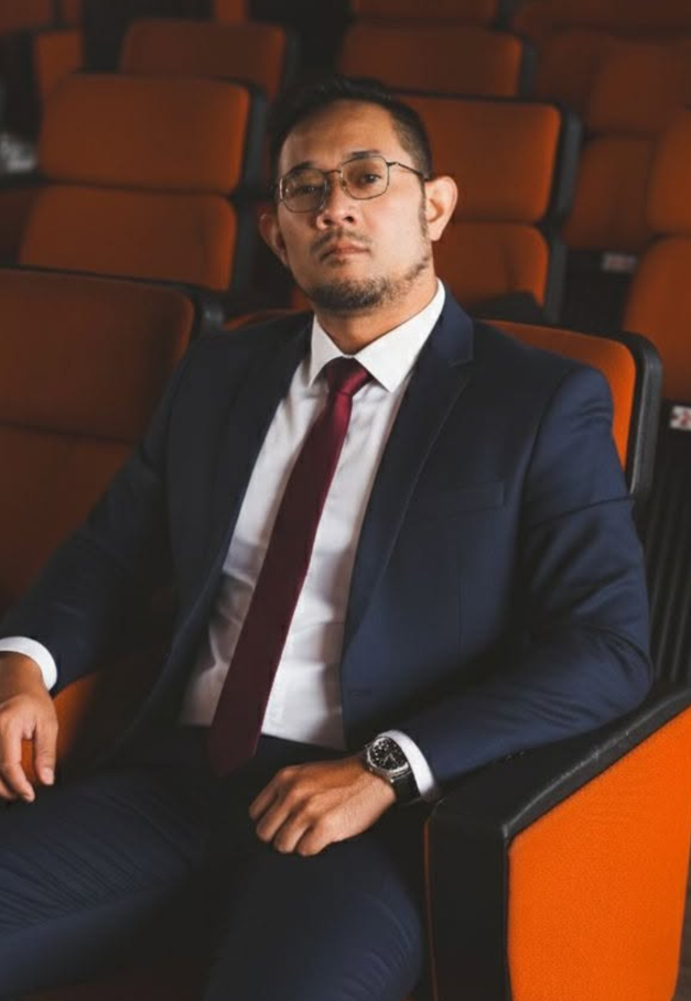 脫下工地的安全帽,換上筆挺的深藍色西裝,阿力搖身一變成為一位沈穩的紳士。坐在劇院般的紅色座椅上,他不笑,但眼神裡多了一種冷靜與思考,仿佛下一秒就要做出一個決定性的判斷。襯衫、領帶、手錶,每一個細節都展現他對自我形象的堅持。這張照片打破了人們對「工人只能粗獷」的刻板印象——阿力可以在鋼筋水泥之間揮汗,也能在會議室裡鎮定自若。他的帥氣,不僅來自外表,更來自能在不同角色之間自由切換的自信。