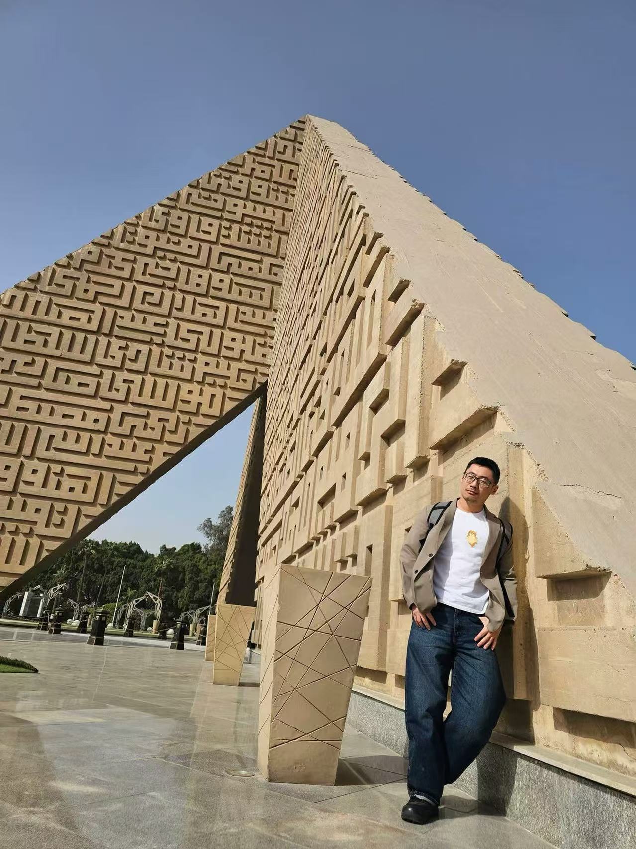 阿簡身上有一種很奇妙的氣質!像是把自然和城市都融合在一起。在巨大建築的牆邊。豪邁的幾何線條,巨大結構直指澄靜的一片天空,整個畫面很硬朗。但阿簡站在那裡,反而把那種建築的冷硬感變得柔和。有人說,有些人適合大自然,有些人則適合都市,阿簡好像都可以。他站在山裡像山,站在城市裡又像城市的一部分。朋友才又笑說:「宜蘭男神不是因為他住宜蘭。」也許是因為那種——
