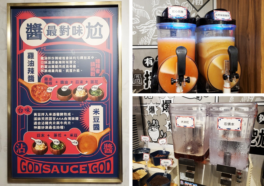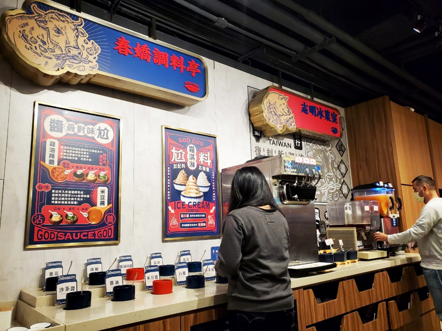 甚至很貼心的給選擇性障礙的顧客搭配調料的參考圖;對於自助飲品尬鍋也有一番特色,而這季大家都很推薦的是「古早味酸鹹甜」!酸甜鹹的冰沙口感,非常清爽解膩!很適合當吃完主餐後要品嘗甜點前的清味飲品!