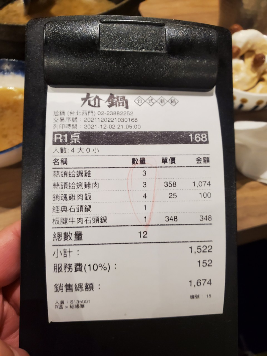 這次四個人的用餐價格是1674(含10%服務費),以主鍋、蔬菜吃到飽、飲品甜點綜合評分來說…. 不貴!非常推薦各位來嚐鮮看看,但強烈建議一定要定位!不然真的會等到天荒地老…