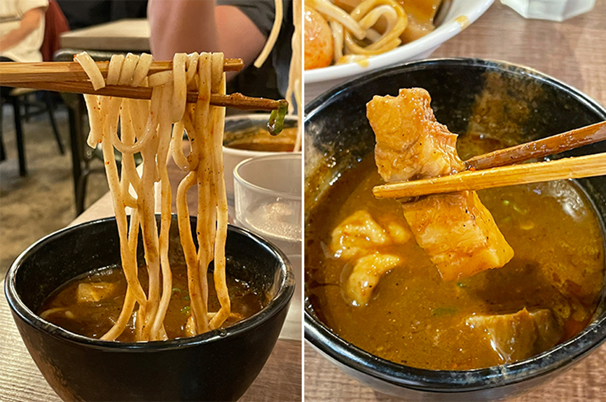 除此之外沾醬裡面還有雞肉、豬五花,口感適中軟嫩,不會有燉煮過久、過硬的感覺,碗內的叉燒肉沾上蝦湯後,搭配起來很不錯。