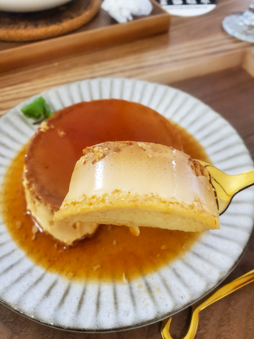 從第一口入嘴就能感受到滿滿的奶香味,口感上非常厚實,不是像普通布丁一樣塌軟,搭配自製的甘甜焦糖醬,甜而不膩足以讓人回味無窮!