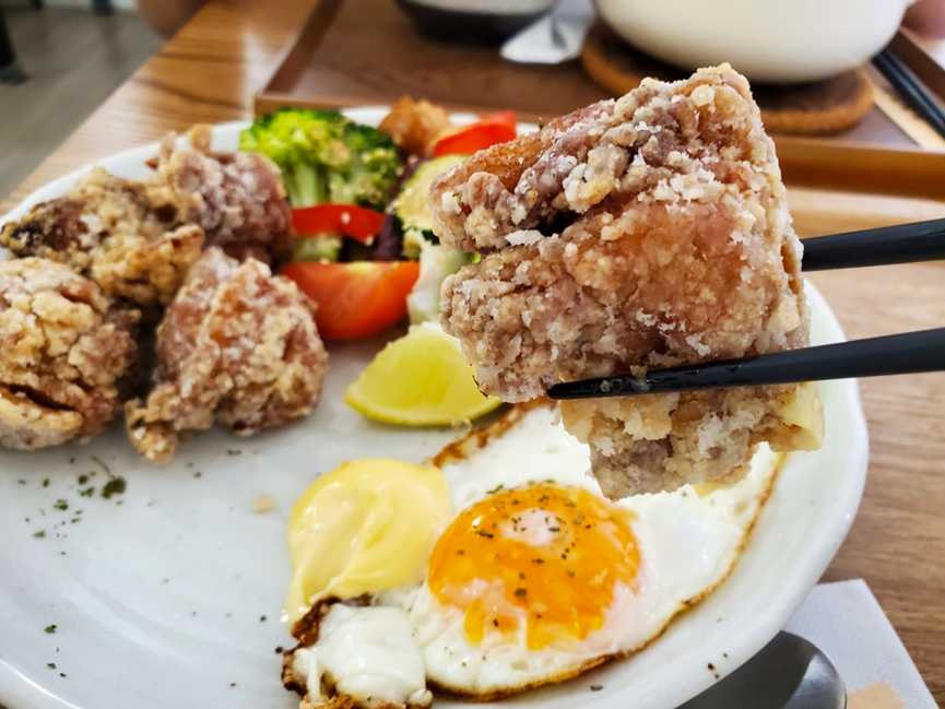 另一位小編點的則是「日式唐揚雞套餐」,口味上非常適合大眾,搭配、半熟荷包蛋及大量季節食蔬沙拉,對於想吃炸物又同時想吃菜的人,一道餐點直接滿足兩種願望!